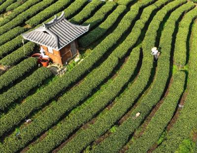 龙岩市上杭县临城镇龙翔村发现的大规模晚白垩世恐龙足迹群址(2020年11月9日摄,无人机照片 )。新华社发