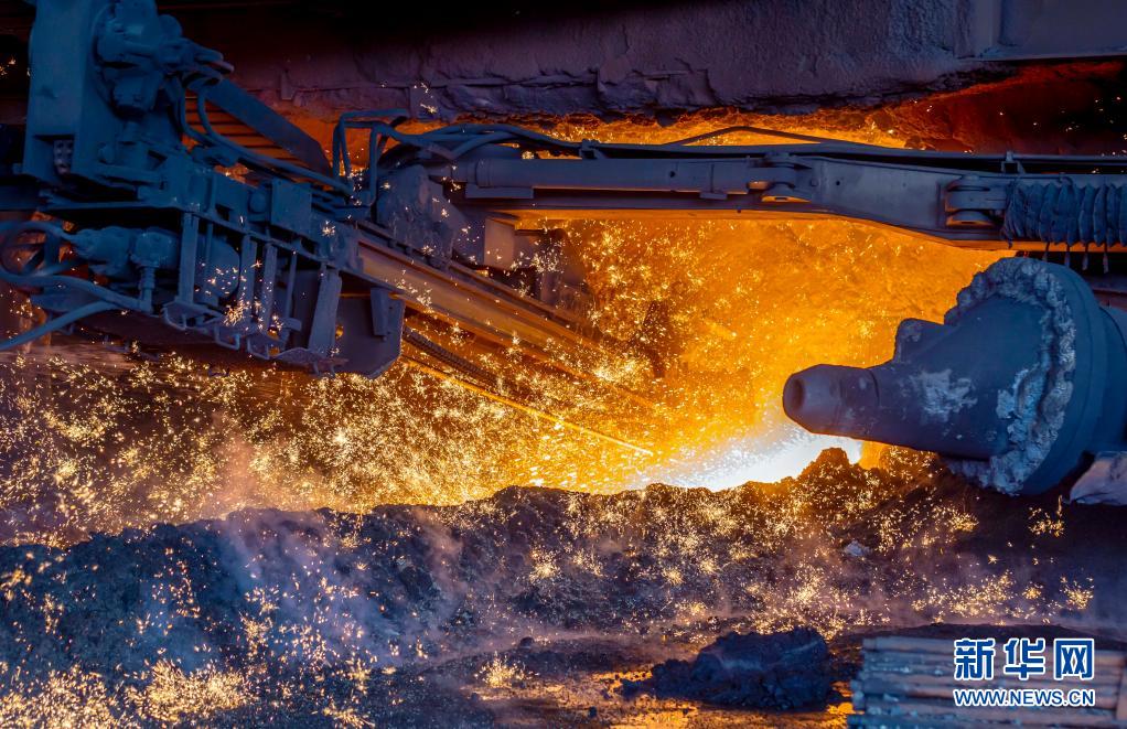 7月24日,首钢水钢公司铁焦事业部四号高炉铁口出铁水。
