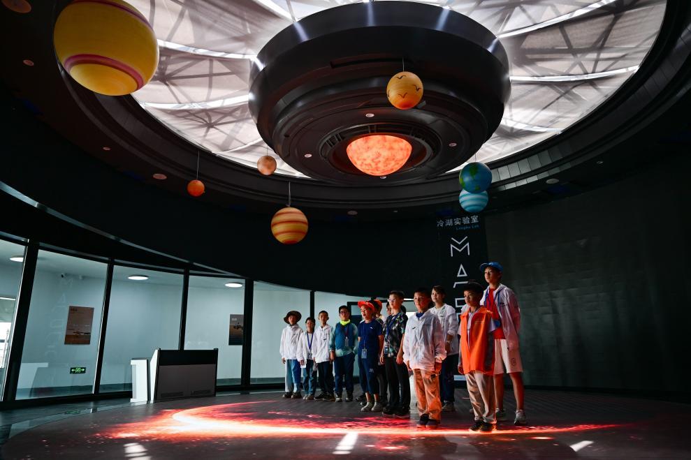 2025年7月29日,参加暑期研学的小朋友在冷湖镇“冷湖实验室”学习天文知识。 新华社记者 张龙 摄