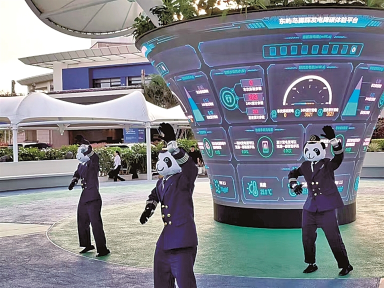 在博鳌亚洲论坛期间,“熊猫船长”机器人进行群舞表演。王妤心泓摄/光明图片