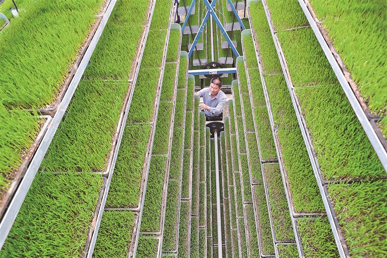 无人驾驶运输车不仅是秧苗的高效“配送员”,还是它们的暖心“保育员”。以前,在运输过程中,我们总担心秧苗“伤寒感冒”。现在,靠着无人驾驶运输车“肚子”里的控温控湿系统,外面春寒再重,里头的秧苗也冻不着,舒舒服服就到了下一站。我们算了一笔经济账,仅靠无缝衔接的转运系统,就能让秧苗养育综合效率提升超过30%,为后续的高产稳产打下基础。