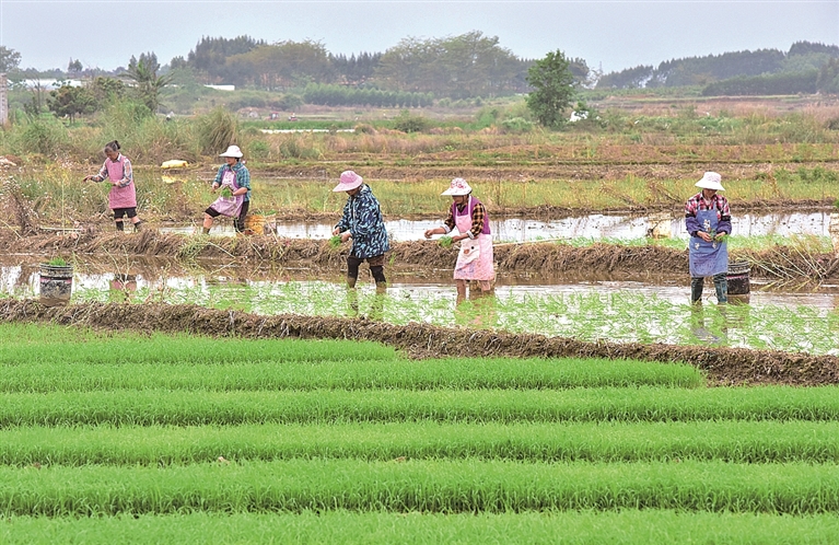 广西富川瑶族自治县古城镇农民在进行早稻插秧。新华社发