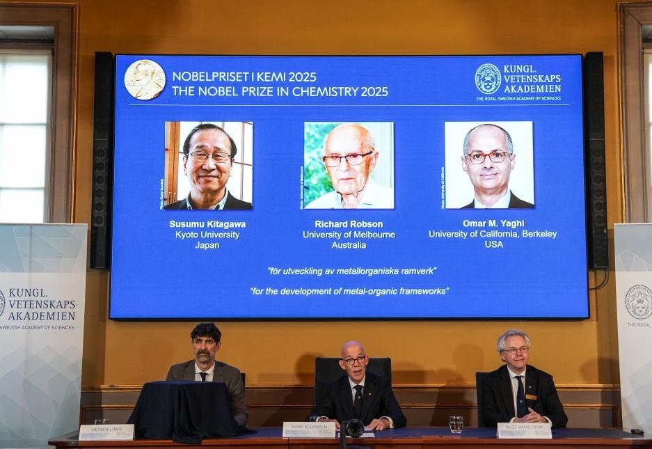 • 三名科学家因金属有机框架研究获2025年诺贝尔化学奖